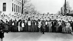 Sanitation Workers Assemble in Front of Clayborn Temple for a Solidarity March, Memphis, TN, March 28, 1968