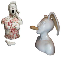 Se trata del proyecto "Rosa Carne" - Esta exposición forma parte de la programación de exposiciones de CERCO, cuyo principal objetivo es poner en valor la cerámica contemporánea - La propia Ana Cruz (Lisboa, 1983) presenta en este texto la exposición y habla del proyecto: "su objetivo es transformar la Mujer en adorno, una confrontación entre lo bello/feo y romántico/agresivo"