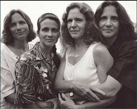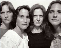 Bebe y a sus cuñadas Mimi, Laurie y Heather mirando fijamente al