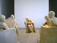 Por último se encuentran las figuras que semejan tentetiesos, cuya incomunicación viene determinada por el peso de su propio ser concentrado en una gran bola de cintura para abajo que sustituye a las piernas. Así es Escena de conversación (1994), 21 figuras que, estáticas, conversan ancladas en su peso sobre la terraza del tercer piso del Edificio Sabatini.