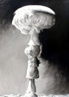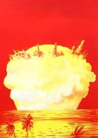 En el caso de Paraísos (2010), Pepe Medina proporciona una semiótica para interpretar y leer el estado de la realidad. En primer lugar, a través de una serie de acuarelas donde muestra importantes explosiones en un entorno tropical y veraniego. Un gran hongo quizás atómico que se eleva desde las plácidas playas, en una emergencia humeante que revela su propia destrucción, como una emblemática alegoría del presente. Por otra parte, los paraísos vienen anunciados en los medios de comunicación de masas. No en el sentido desastroso proveniente del tsunami, el terremoto o el incendio que tienen lugar en esos parajes turísticos, sino en un sistema oculto identificable con el flujo de capital y de lenguaje. Aparentemente los dibujos de Pepe Medina reciben su inspiración de la actualidad, pero en la unión de la hoja de periódico como noticia del presente y una suerte de suma emblemática representacional, comparece la actualidad como algo propio del pasado. Sabemos que, puestos en plan heideggeriano, el humo de las fábricas es lo natural y posiblemente, como empezó, el mundo está abocado a otro big-bang.