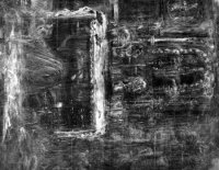 En formato vertical, perpendicular a la pintura visible, y por la claridad de algunos de sus elementos, bastante trabajada, aparece una escena de interior de iglesia. En el centro se observa un altar cubierto con un paño que cae por sus lados; sobre él, tres candelabros, varios objetos de culto, quizás el cáliz, la patena y el copón y dos cabezas que, por la expresión doliente de una de ellas, probablemente representen bustos relicarios de mártires. En el fondo aparece pintado un altar con una figura en el centro, posiblemente una virgen. Delante se ve con claridad una figura arrodillada, apoyada en una de sus manos y cubierta por ropajes de carácter religioso. Hay que señalar que en la radiografía no se aprecian trazas de la cabeza ni de los pies. Se trata de un disciplinante similar al que pintó años más tarde, en 1930, en Antes de la procesión o en El tránsito de San Ignacio de 1931. El empaste de la pintura empleada para el paño sobre el altar es la causa de los craquelados que se percibían en la zona central de la pintura.