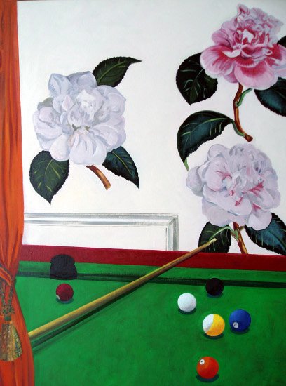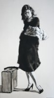 Sin embargo Charles Malinsky (Canadá, 1957), deliberadamente monocromático, teje en sus lienzos historias enigmáticas, perfumadas de un halo cinematográfico con imágenes que son, como fragmentos de una secuencia más extensa y con un gran sentido teatral y a veces, hasta surreal en sus historias pintadas.