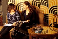 Las actrices Esther Rivas y Cristina Gallego repasando el guión