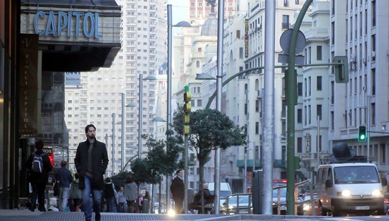 El actor Jorge Machín en una escena rodada en La Gran Vía de Madrid