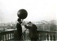Académicos de la Real Academia de Ciencias liberando un globo-sonda para estudiar y formar los planos de las corrientes en las altas regiones de atmósfera. La operación se efectuó de manera simultánea en diferentes ciudades de toda Europa y los datos recogidos fueron enviados a la Comisión Internacional Aerológica de Estrasburgo, 1914