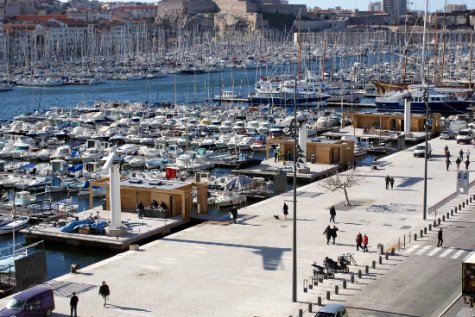 En 2009, el Ayuntamiento y el ente Marseille Provence Métropole (MPM) convocaron un concurso para enderezar la situación. La primera fase de la reforma ha liberado de obstáculos y vehículos los tres muelles del puerto, revestidos ahora con un pavimento unitario de granito pálido que recuerda los adoquines originales de piedra caliza. El Quai des Belges, muelle central, dedica el 60% de su superficie a los peatones y los protege del sol bajo la Grande Ombrière, un palio rectangular de 1.000 m2 que también puede acoger grandes eventos. En el agua, se han dispuesto nuevos embarcaderos flotantes capaces de acoger todas las actividades náuticas sin interferir en el paso ni las vistas de los paseantes.