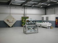 Sala del evento "¿Qué Fresas?" que se realizó con motivo de la inauguración de las nuevas naves de los talleres GAYPE en Getafe. En el centro, una de las máquinas que se fabrican en los talleres. Este evento supuso el arranque de la publicación de noticias en nexo5.com magacín.