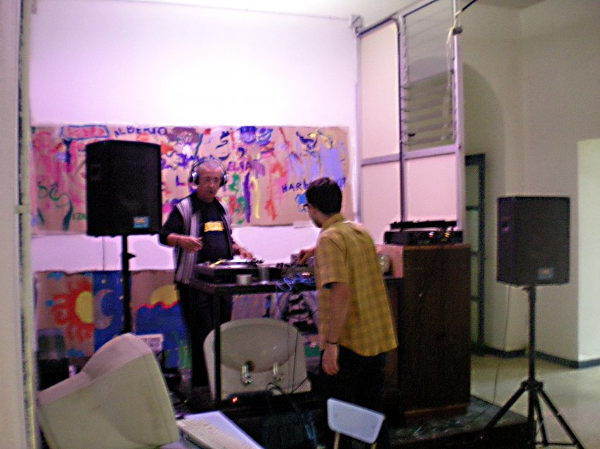 José Manuel Costa realizando una sesión de arte sonoro en CSA Tabacalera en el barrio de Lavapiés de Madrid.