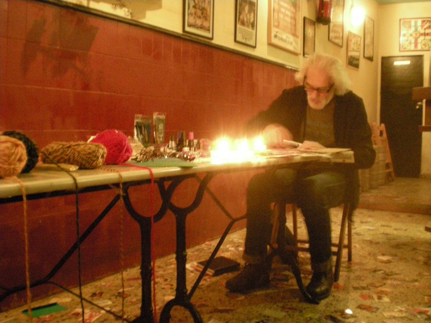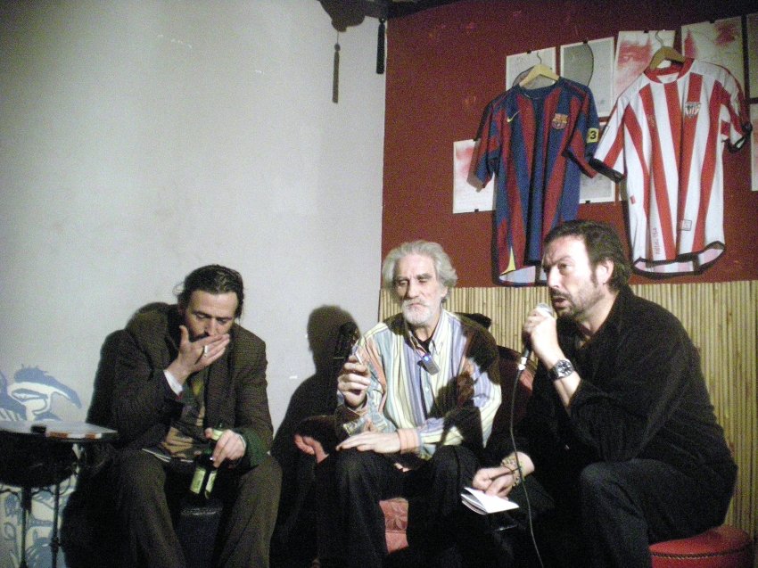Paco Sevilla, Hipólito García Bolo y Ángel Petisme en la Sala Calvario de Madrid recitando sus poemas.
