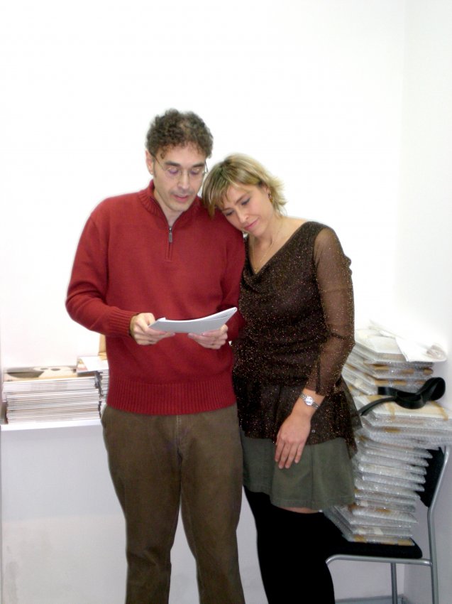 Chuso Moreno leyendo poemas propios acompañado por Gracia Iglesias durante la presentación del libro titulado "Julián Moreno Hidalgo y la pintura digital pura" (Autor: Chuso Moreno - Editorial: Sepha).
