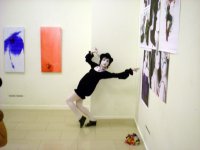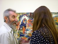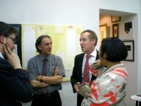 En el centro Alfonso González-Calero (galerista) y Noel Campbell (embajador de Australia en España), conversan en la galería Catarsis de Madrid.